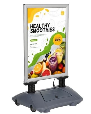 Plakat-Kundenstopper für wirkungsvolle WerbungPlakat-Kundenstopper eignen sich ideal für wechselnde Werbebotschaften im Innen- und Aussenbereich. Dank Klapprahmen lassen sich Plakate schnell austauschen. Robuste Materialien sorgen für Langlebigkeit auch bei Wind und Wetter.