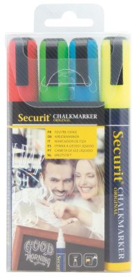 Kreidemarker für Tafeln & SchaufensterKreidemarker eignen sich für beschreibbare Tafeln, Glasflächen und Schaufenster. Sie lassen sich sauber anwenden und einfach wieder entfernen.