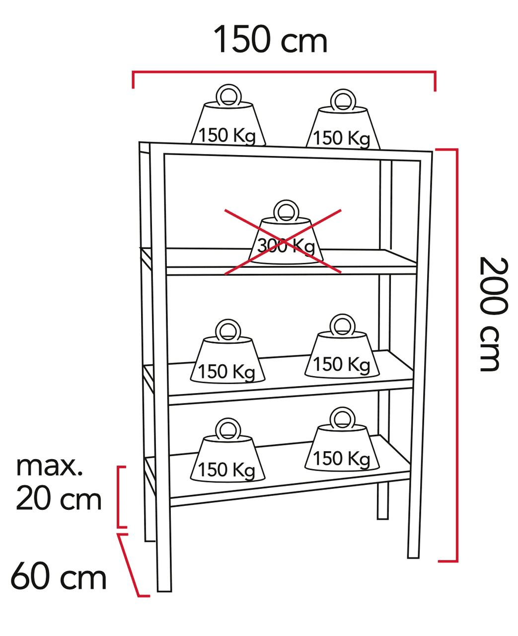 Die Tablare dieses Regals bestehen aus hochwertigen Spanplatten, die für eine sichere Lagerung Ihrer Güter sorgen. Jedes der vier Tablare kann mit bis zu 300 kg belastet werden, was Ihnen die Möglichkeit gibt, schwere Gegenstände oder Materialien problemlos zu lagern, ohne sich Gedanken über Instabilität machen zu müssen.