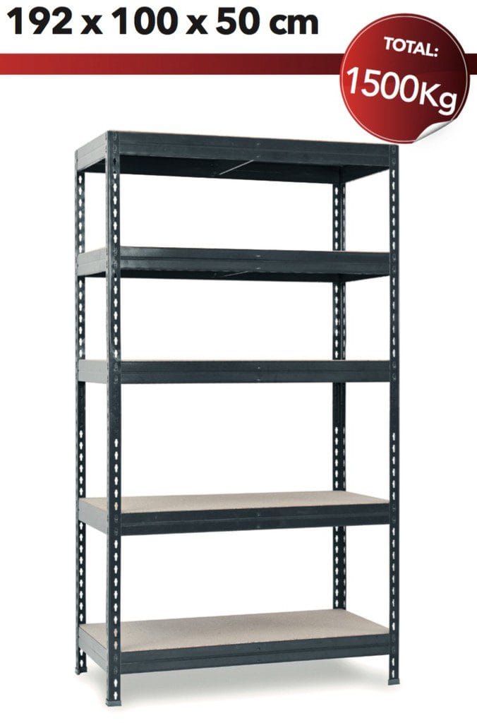 Entdecke unser praktisches Regalsystem mit den Maßen 1920x1000x500mm und 5 Spanplattentablaren, die jeweils bis zu 300kg tragen können. Schnelle und werkzeuglose Montage in nur 15 Minuten dank cleverem Stecksystem, ideal für den Einsatz im Lager oder Büro. Mit dem optionalem Gummihammer wird der Aufbau noch einfacher – bestelle jetzt!