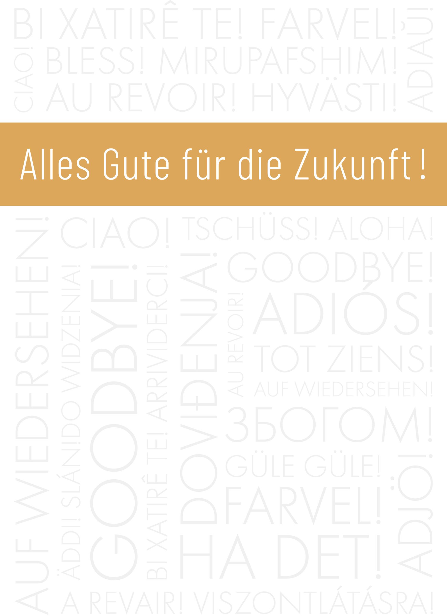Die ABC Abschiedskarte besteht aus hochwertigem, stabilem Karton, der sich angenehm anfühlt und eine edle Optik bietet. Mit einem klassischen Design und einem zarten Goldband, das dem Gesamtbild eine besondere Note verleiht, ist diese Karte sowohl für formelle als auch für persönliche Anlässe geeignet. Das ansprechende Layout ermöglicht es Ihnen, Gedanken und Erinnerungen auf eine ansprechende Weise auszudrücken.