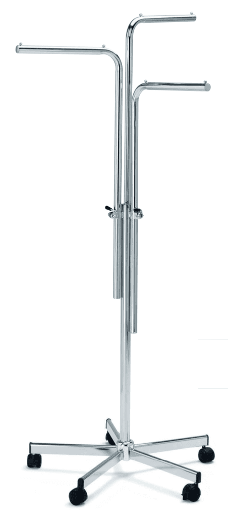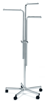 Insgesamt betrachtet ist der höhenverstellbare Abhängeständer mit 3 geraden Armen eine flexible Wahl für die Präsentation von Kleidungsstücken. Das elegante Rundrohr-Design, die praktische Höhenverstellbarkeit und die verchromte Oberfläche machen diesen Ständer zu einem nützlichen Werkzeug für eine ansprechende und variable Präsentation in verschiedenen Umgebungen.