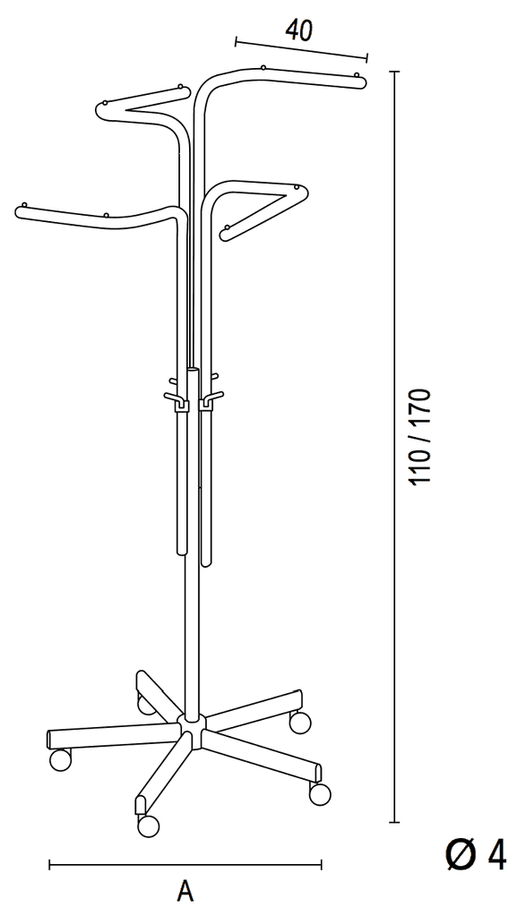 Mit seinen 4 geraden Armen bietet der Ständer eine vielseitige Präsentationsfläche für Ihre Kleidungsstücke. Diese geraden Arme erlauben es Ihnen, die Kleidungsstücke übersichtlich und ansprechend zu arrangieren. Die klare Anordnung der Arme ermöglicht eine einfache Auswahl und Betrachtung der Kleidungsstücke.