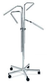 Insgesamt betrachtet ist der höhenverstellbare Abhängeständer mit 4 schrägen Armen eine innovative Wahl für die Präsentation von Kleidungsstücken. Die gewinkelten Schrägarme, die Höhenverstellbarkeit durch Schlauchklemmen, die Rollen und die verchromte Oberfläche machen diesen Ständer zu einem vielseitigen Werkzeug für stilvolle und flexible Präsentationen in verschiedenen Umgebungen.