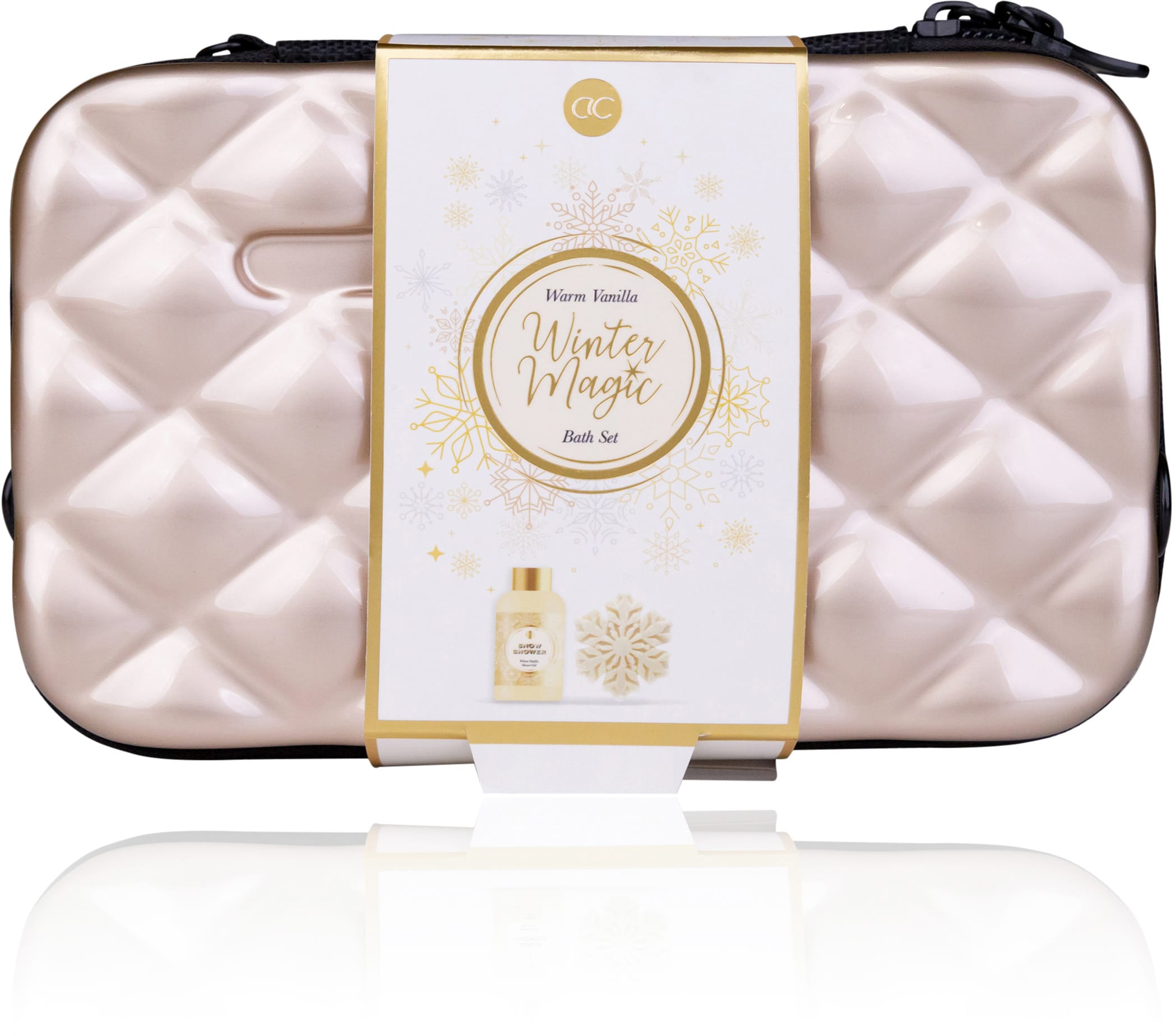 Verwandeln Sie Ihr Badezimmer in eine Winterwunderwelt mit dem zauberhaften Badeset WINTER MAGIC. Dieses exklusive Set wird in einer stilvollen Hardcase-Kosmetiktasche geliefert, die nicht nur praktisch ist, sondern auch ein echter Hingucker in Ihrem Badezimmer.