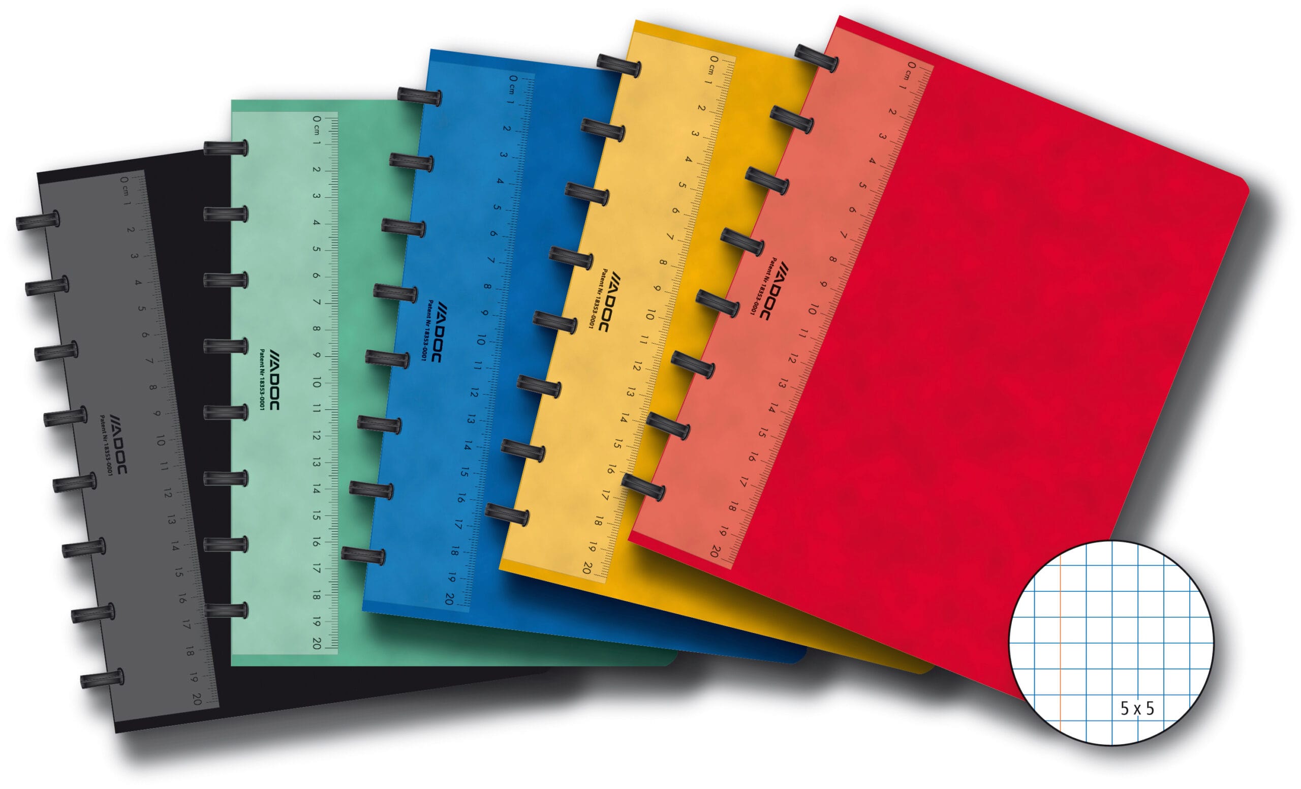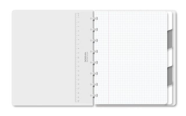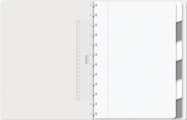 Der Umschlag des Notizhefts ist aus stabilem Karton gefertigt und verfügt über eine ansprechende Leinenstruktur in verschiedenen Farben, die für eine angenehme Haptik sorgt. Die Ringe in schwarzem Design halten das Notizheft sicher zusammen und ermöglichen ein müheloses Umblättern der Seiten. Zusätzlich ist das Notizheft mit einem praktischen Lineal ausgestattet, um das einfache Zeichnen von Linien zu ermöglichen.