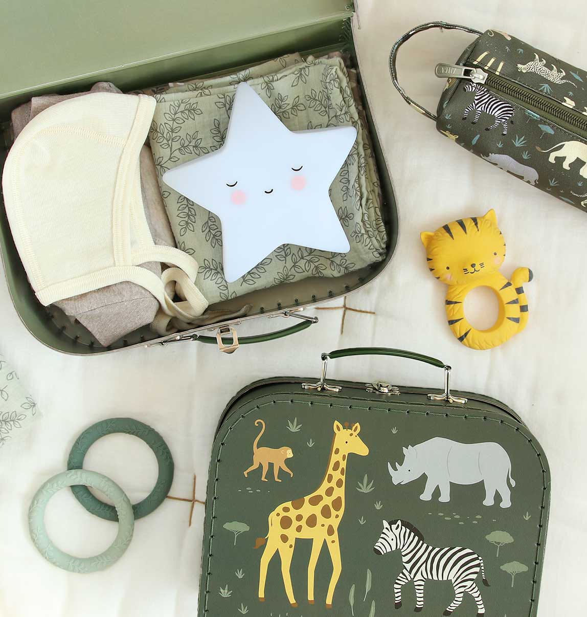 Mit dem Kauf dieses Sets erhalten Sie nicht nur einen, sondern gleich zwei bezaubernde Koffer in unterschiedlichen Grössen. Dies bietet vielseitige Nutzungsmöglichkeiten, sei es zur Aufbewahrung von Spielzeug, zum Verstauen von Bastelutensilien oder einfach als dekoratives Element im Kinderzimmer. Die harmonische Kombination aus Funktionalität und Ästhetik macht dieses Kofferset zu einem Must-Have für kleine Entdecker und Ordnungsliebhaber.