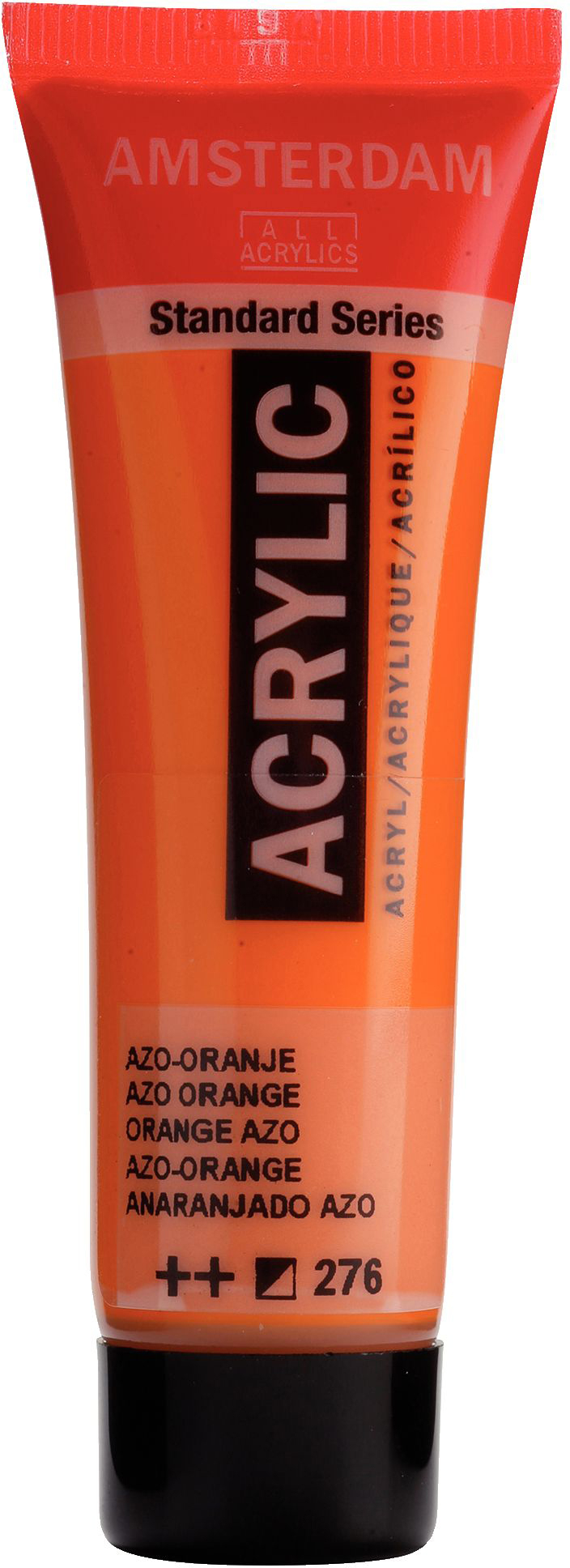 Die Acrylfarbe Azo-Orange (276) aus der Amsterdam Standard Series ist eine halbdeckende Farbe mit einer sehr hohen Lichtechtheit (++). Amsterdam Standard Series Unsere Standardserie bietet dir die umfangreichste Palette an bemerkenswert lebendigen Acrylfarben. Diese vielseitige Farbe ist leicht zu verarbeiten und lässt sich einfach auftragen. Du kannst die Farbe entweder direkt aus der Tube verwenden oder mit Wasser oder einem unserer Acrylmalmittel verdünnen. Farbe von mittlerer Viskosität für sichtbare Pinselstriche, Struktur und gleichmässige Deckkraft mit seidenmattem Finish. Hergestellt mit hochwertigen, lichtechten Pigmenten Formuliert mit 100 % Acrylharzbindemittel, was zu einem aussergewöhnlich haltbaren und flexiblen Farbfilm mit gleichmässigem Glanz führt. Die geruchsneutrale, wasserbasierte Formel wird nach dem Trocknen wasserfest und dauerhaft. Umfangreiche Palette aus 102 Farben in 20ml und 120ml Tuben, von denen bis zu 90 Farben auch in grösseren Grössen erhältlich sind. Die Farbpalette umfasst sowohl traditionelle als auch moderne Farben wie zum Beispiel die Reflex- und metallische Varianten. Haftet auf praktisch allen leicht porösen Oberflächen, einschliesslich Leinwand, Papier, Pappe, Holz, Stein und Beton. Mit Stolz in den Niederlanden hergestellt.