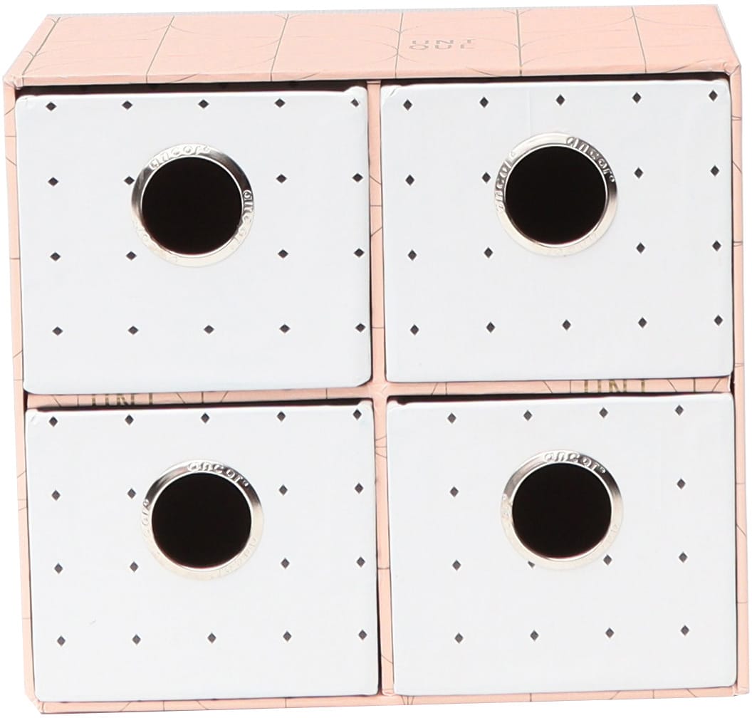 Dank ihres platzsparenden Designs passt die Schubladenbox Unique auf jeden Schreibtisch, Frisiertisch oder in jedes Regal. Nie wieder Unordnung und Chaos – mit dieser Box halten Sie Ihre Gegenstände ordentlich geordnet und griffbereit.