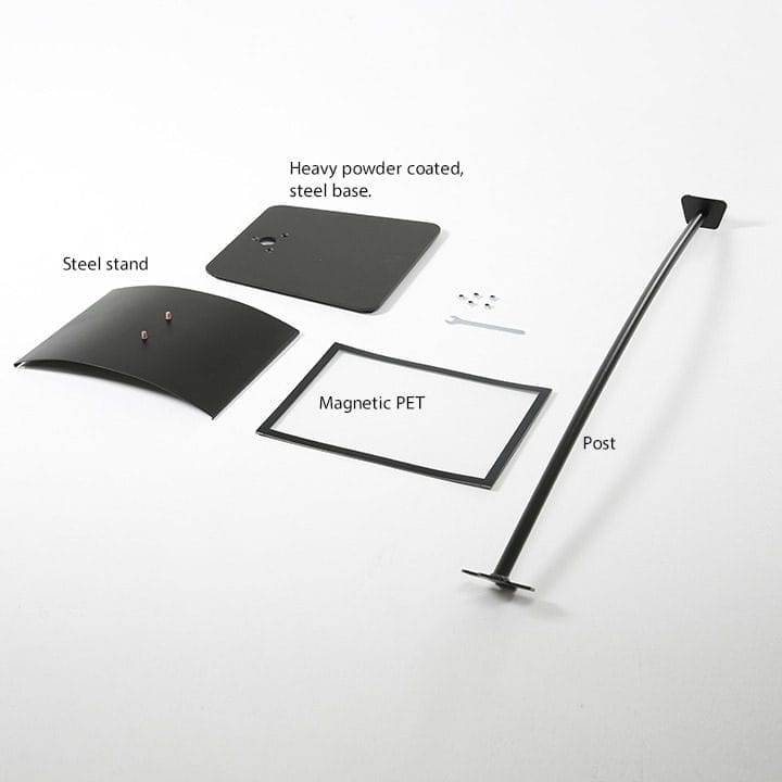 Der Stahlsockel des Arc Menuboards sorgt für Stabilität und Standfestigkeit. Somit eignet es sich perfekt für verschiedene Unternehmensumgebungen, in denen Zuverlässigkeit wichtig ist.