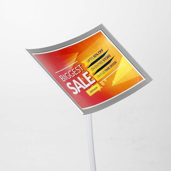 Das Arc Menuboard besticht durch sein geschwungenes Design, das eine elegante und moderne Atmosphäre schafft. Ideal für zeitgemäße Umgebungen, vereint es Funktionalität und Ästhetik auf stilvolle Weise.