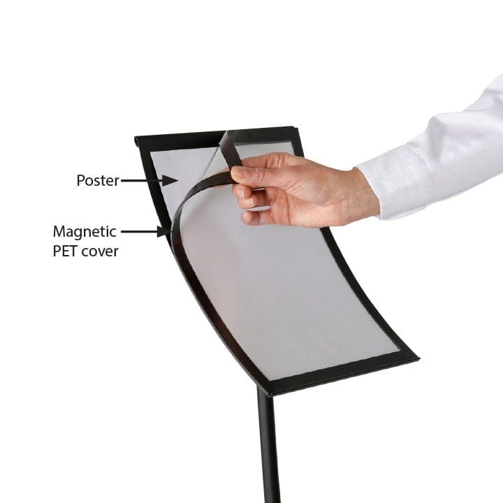 Die Magnetplakatabdeckung mit Anti-Reflex-Eigenschaften hält Ihr Plakat sicher an Ort und Stelle, ohne dass Werkzeuge zur Befestigung benötigt werden. Dies ermöglicht eine mühelose und schnelle Aktualisierung der Inhalte.