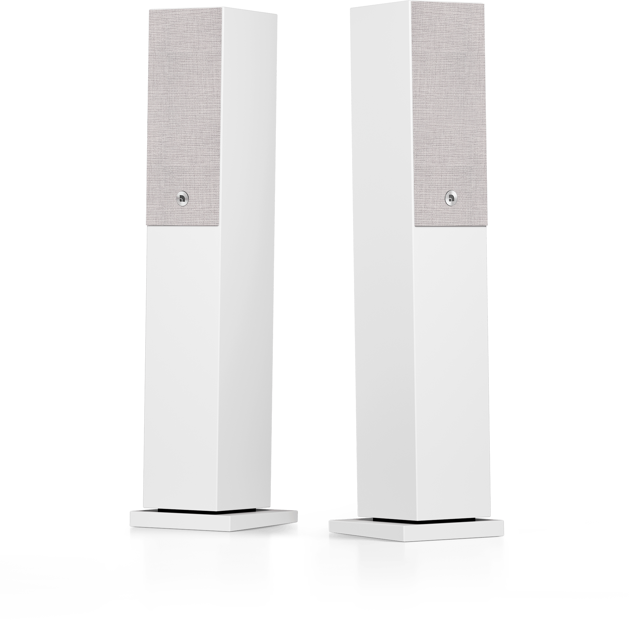 - Das MDF-Gehäuse in stilvollem Weiss oder Schwarz fügt sich harmonisch in Ihr Zuhause ein. Die Stofffronten sind magnetisch befestigt und können für einen moderneren Look, falls Sie diesen bevorzugen, einfach abgenommen werden. Dank seiner Grösse bietet der A38 W ein noch kraftvolleres Klangerlebnis als sein Schwestermodell A28 W. Das grössere Gehäuse mit seinen zwei Tieftönern sorgt für einen besonders kraftvollen, tiefen Bass. Dank seiner geringen Stellfläche passt er bequem auf den Boden neben den Fernseher.