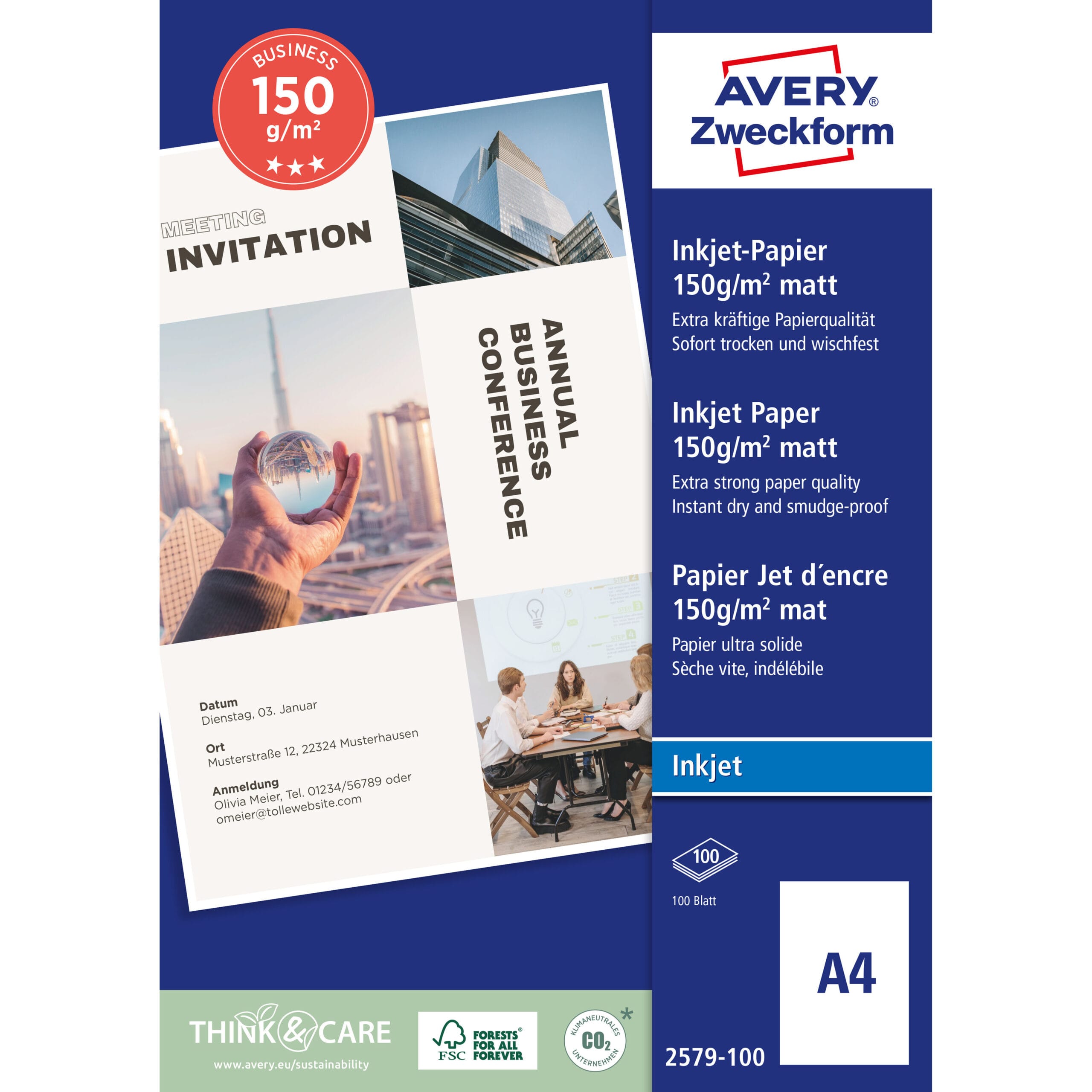 Das Superior Inkjet Papier von AVERY ZWECKFORM zeichnet sich durch eine effektive Trockenformel aus, die sicherstellt, dass Ihre Ausdrucke nach dem Druck sofort trocken und wischfest sind. Auf diese Weise können Sie sofort mit der Weiterverarbeitung Ihrer Dokumente beginnen, ohne Gefahr zu laufen, dass die Tinte verschmiert.