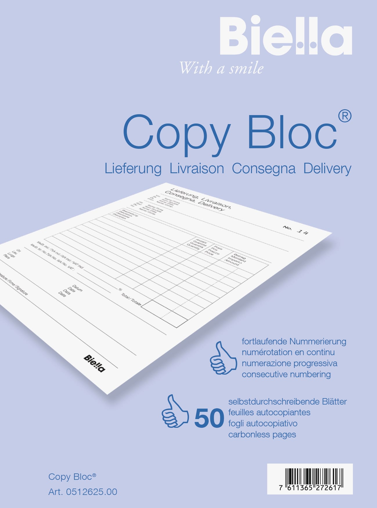 BIELLA Liefers. COPY-BLOC D/F/I/E A6 51262500U selbstdurchschreib. 50×2 Blatt