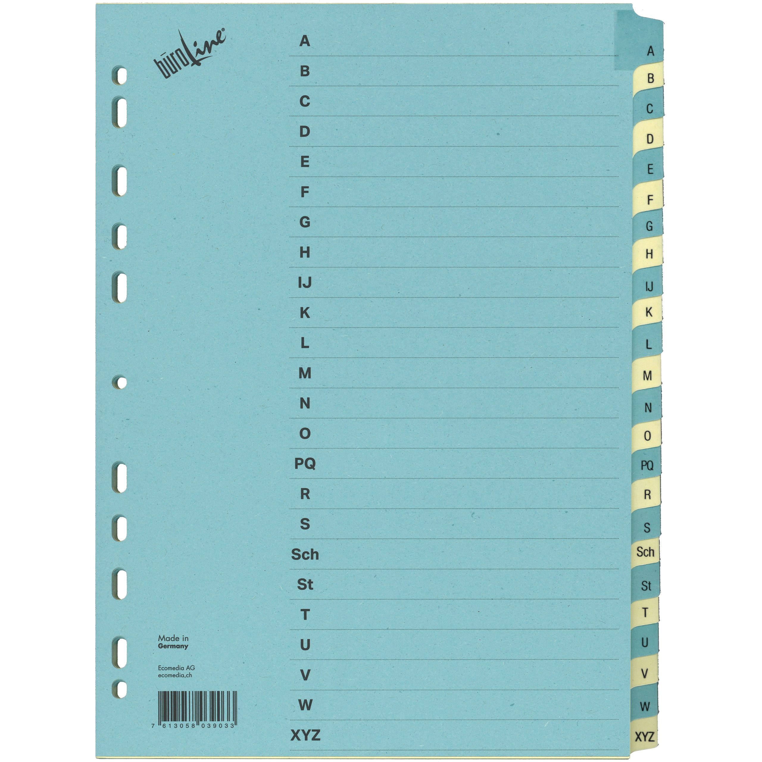 - Platzsparend: Mit einer Grösse von A4 passt das Register problemlos in jeden Aktenordner oder auf Regale.