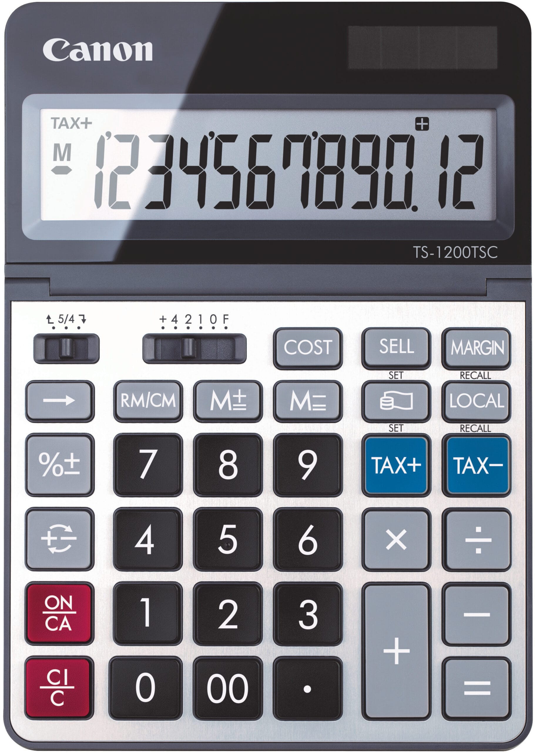 Die einstellbare Anzeige des Canon TS-1200TSC sorgt dafür, dass die Zahlen klar und deutlich angezeigt werden. Dies erleichtert die Nutzung des Rechners und trägt zu einer effizienten Arbeitsweise bei.