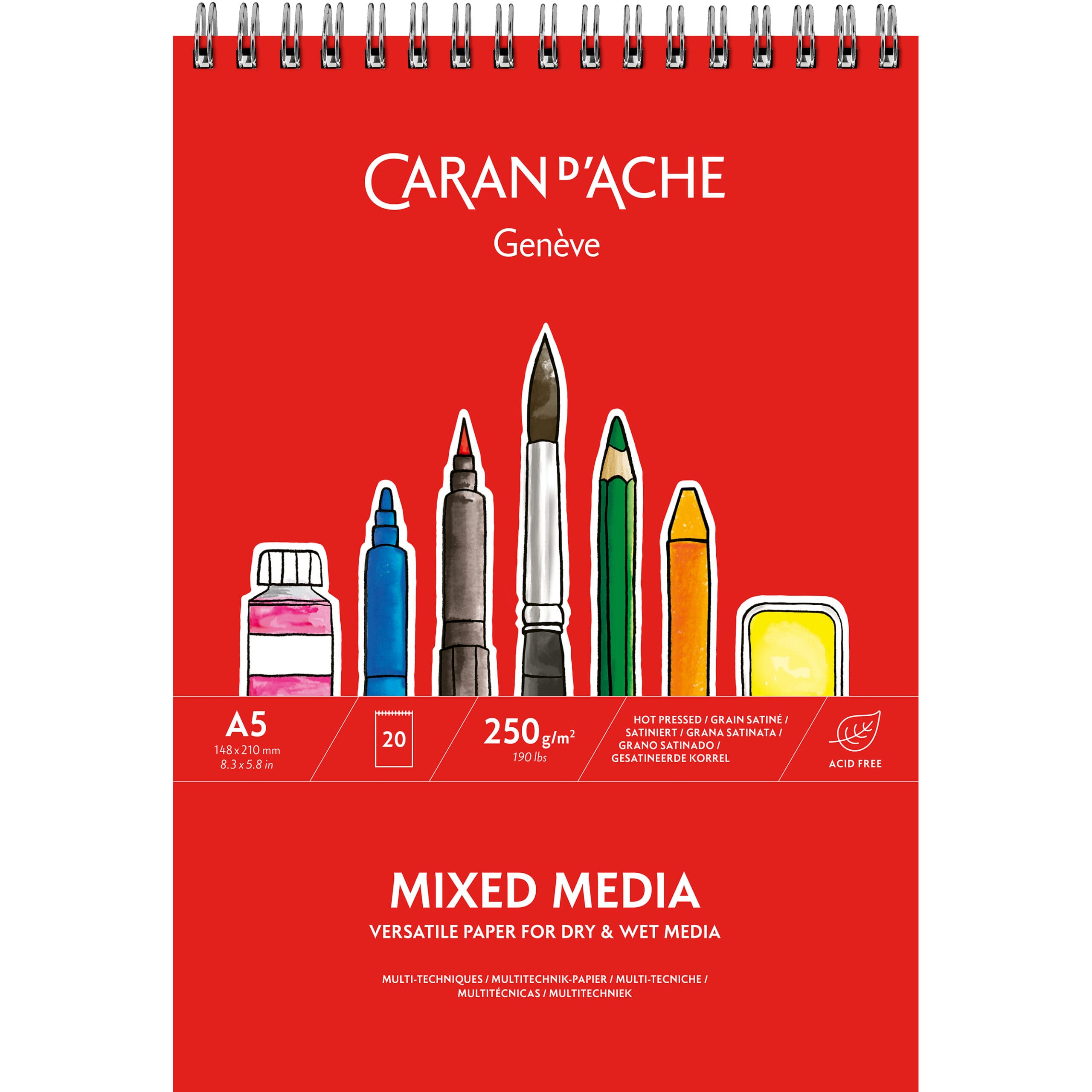 Der Spiralzeichenblock ist ein unverzichtbares Werkzeug für alle kreativen Köpfe da draussen. Mit einer Stärke von 250 g/m2 ist das Papier robust genug, um sowohl trockene als auch nasse Techniken zu bewältigen. Es ist FSC-zertifiziert und säurefrei, was bedeutet, dass es nicht nur umweltfreundlich ist, sondern auch die Langlebigkeit Ihrer Kunstwerke gewährleistet.