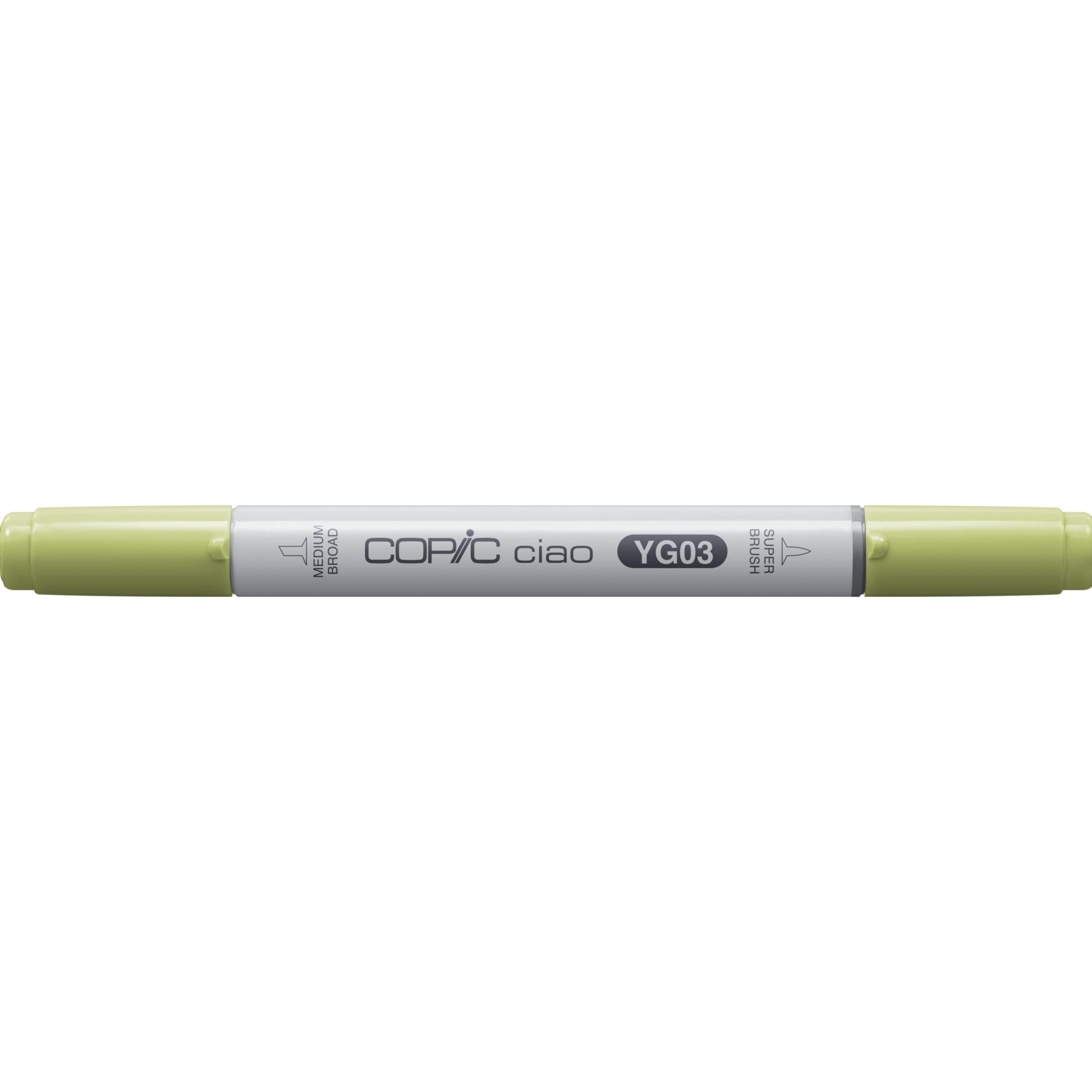 Copic Ciao Marker YG03 – perfekt für Modedesign, Kalligrafie und Skizzieren. Mit doppelseitiger Spitze für vielseitige Anwendung. Einfach nachfüllbar und umweltfreundlich.