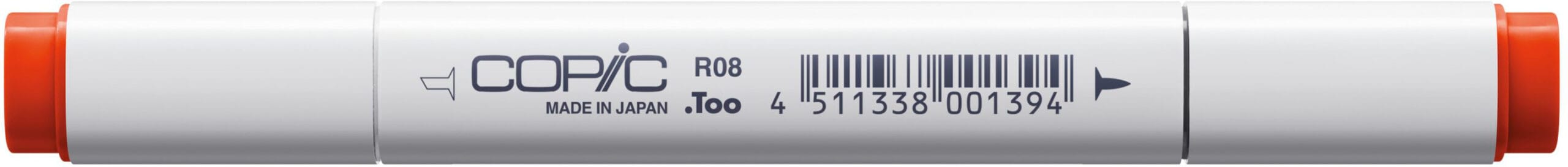 Copic Marker R08 Vermillon ist ein professioneller Layoutmarker mit breiter und feiner Spitze. Vielseitig einsetzbar für Grafikdesign, Illustrationen und mehr. Auf Alkoholbasis, geruchlos und nachfüllbar. Für kreative Profis in vielen Anwendungen geeignet.