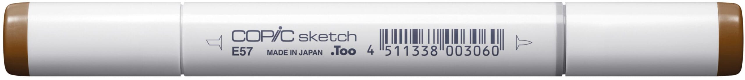 Der Copic Sketch Marker E57 ist nicht nur bei Profis beliebt, sondern auch im Hobbybereich für Comic- und Mangazeichnungen, Stempelkunst, Scrapbooking und für alle, die die Präzision eines Pinselmarkers schätzen. Darüber hinaus kann der Marker in das Copic Airbrushing-Layoutsystem integriert werden, um noch mehr kreative Möglichkeiten zu entdecken.