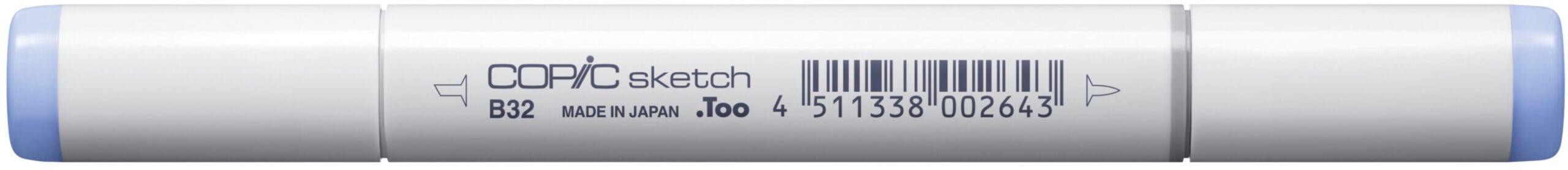 Der Copic Sketch Marker in der Farbe B32 ist ein professioneller Pinselmarker, der in 358 verschiedenen Farben erhältlich ist. Er verfügt über eine speziell entwickelte «Super Brush»-Spitze für feine Linien und Details sowie eine «Medium Broad»-Spitze für breitere Linien. Diese Spitzen sind austauschbar und ermöglichen eine Vielzahl von Anwendungen.