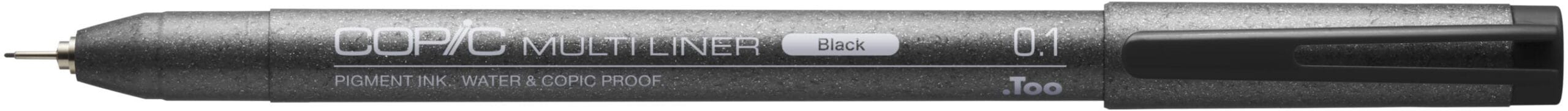 Der Copic Multiliner black 0,1mm ist ein hochwertiger Fineliner, der sich ideal zum Skizzieren und Vorzeichnen eignet. Mit einer Strichstärke von 0,1mm ermöglicht er präzise und feine Linienführung. Dieser Fineliner ist Teil einer Serie von Multilinern, die in insgesamt 7 verschiedenen Strichstärken erhältlich sind, einschliesslich 2 Pinselspitzen.
