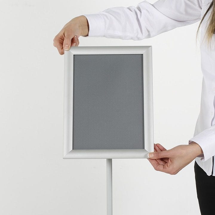 Mit einem Fokus auf Ästhetik und Eleganz wurde dieser Infoständer entworfen, um Ihrem Raum ein zeitloses und ansprechendes Erscheinungsbild zu verleihen. Die schlanke Stange in Kombination mit dem Alu Klapprahmen sorgen für eine stilvolle Präsentation Ihrer Informationen.