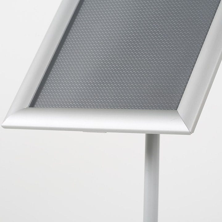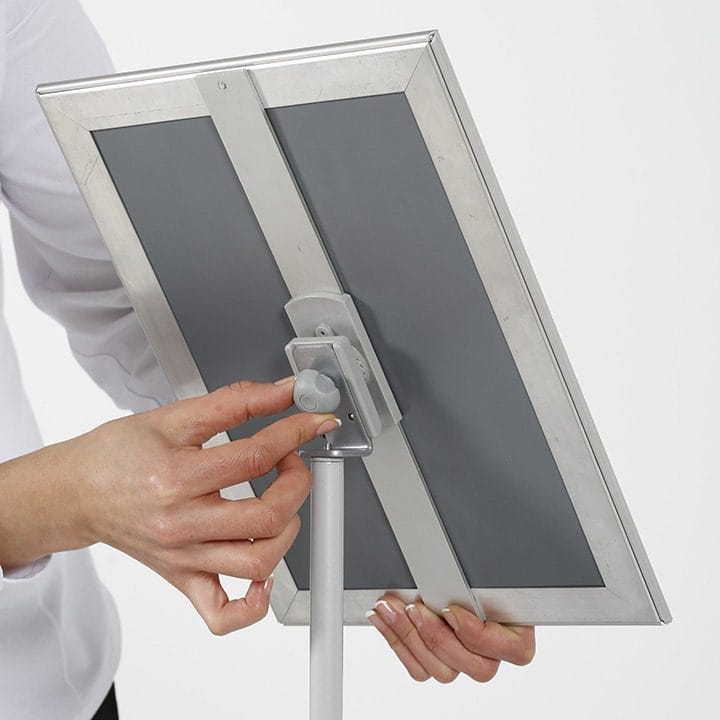Der Bilderrahmen des Infoständers wurde im klassischen Alu Klapprahmen Design gestaltet. Neben seiner Stabilität ermöglicht dieser Rahmen ein müheloses Auswechseln der Inhalte, was die Aktualisierung Ihrer Informationen schnell und unkompliziert macht.