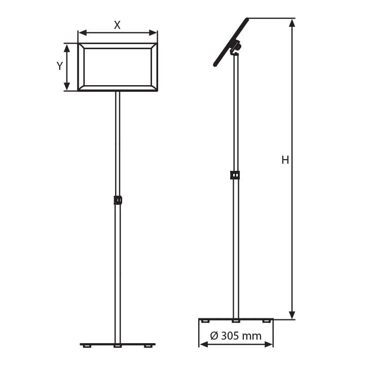 Der Infoständer ist mit einer höhenverstellbaren Stange ausgestattet, die eine Anpassung von 800 mm bis 1300 mm ermöglicht. Auf diese Weise können Sie die optimale Höhe einstellen, um sicherzustellen, dass Ihre Informationen gut sichtbar und leicht lesbar sind.
