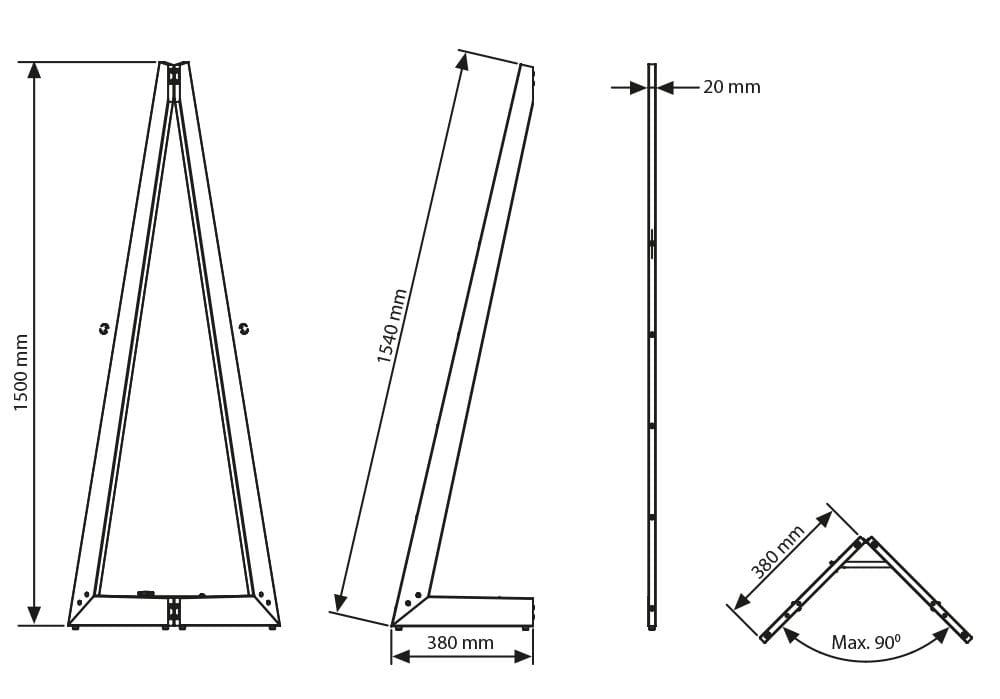 Diese Design Staffelei eignet sich nicht nur für den Outdoor-Einsatz, sondern auch für den Innenbereich. Nutzen Sie sie auf Messen, Events, in Geschäften oder Restaurants, um Ihre Botschaft wirkungsvoll zu präsentieren.