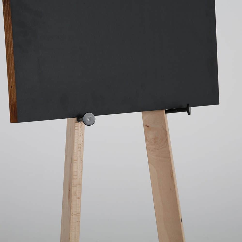 Entscheiden Sie selbst, ob Sie die Staffelei mit einer Kreidetafel bestellen möchten. Diese bietet zusätzliche Optionen zur Präsentation von Informationen, Werbung oder Kunstwerken, um Ihre Inhalte noch vielseitiger zu präsentieren.
