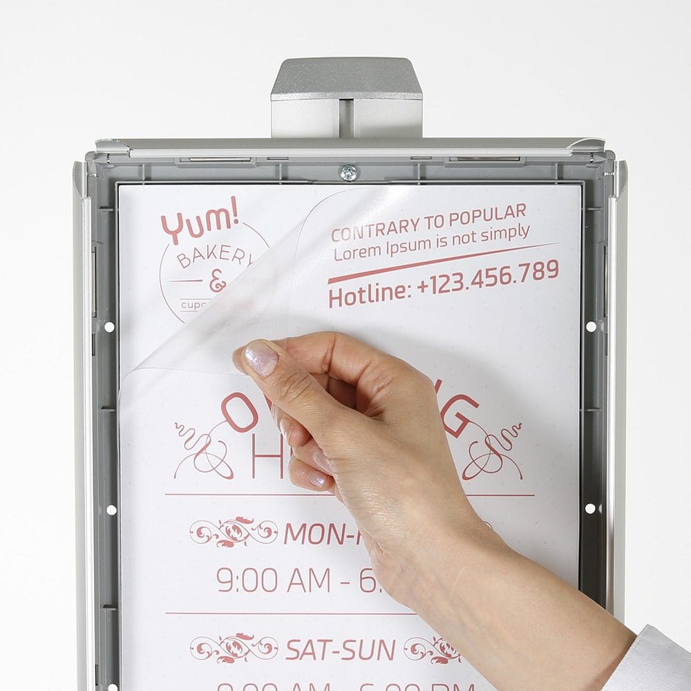 Der Desinfektionsspender ist standardmäßig im A4-Format erhältlich, kann aber bei Bedarf auch in A3 geliefert werden. Diese Anpassungsfähigkeit erlaubt es den Nutzern, die Größe des Klapprahmens entsprechend den Anforderungen ihrer Umgebung anzupassen.