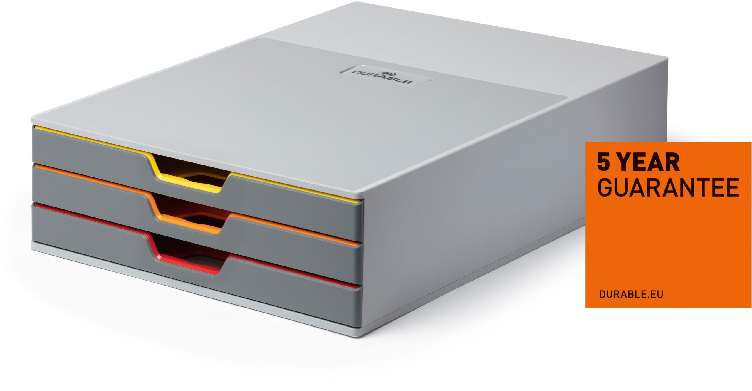 Die DURABLE Schubladenbox Varicolor 3 lässt sich hervorragend mit weiteren Produkten der DURABLE-Serie kombinieren. So können Sie ein ganzheitliches Ordnungssystem für Ihr Büro oder Ihren Arbeitsplatz schaffen. Ob Aktenordner, weitere Schubladenboxen oder Ablagesysteme – die Möglichkeiten sind vielfältig und unterstützen eine durchgehende Organisation.