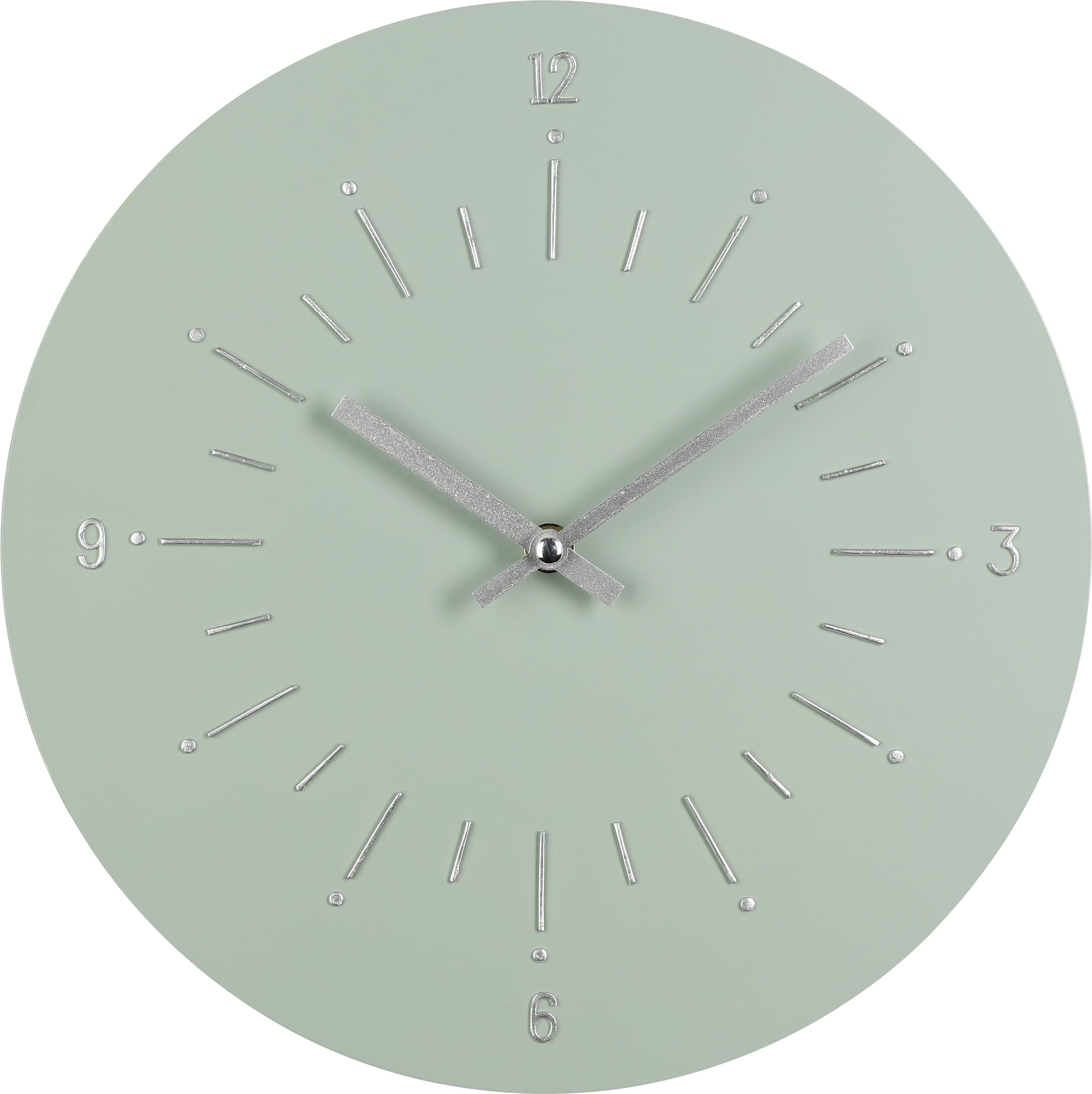 Mit der TAKAHAGI Wanduhr behältst du die Zeit immer stilvoll im Blick. Ihr schlichter Industrial-Style macht sie zu einem dekorativen Accessoire für Wohnzimmer, Essbereich, Schlafzimmer oder Büro. Die Uhr in einem gedeckten Mintgrün mit chromfarbenen Zeigern fügt sich nahtlos in jedes Ambiente ein.
