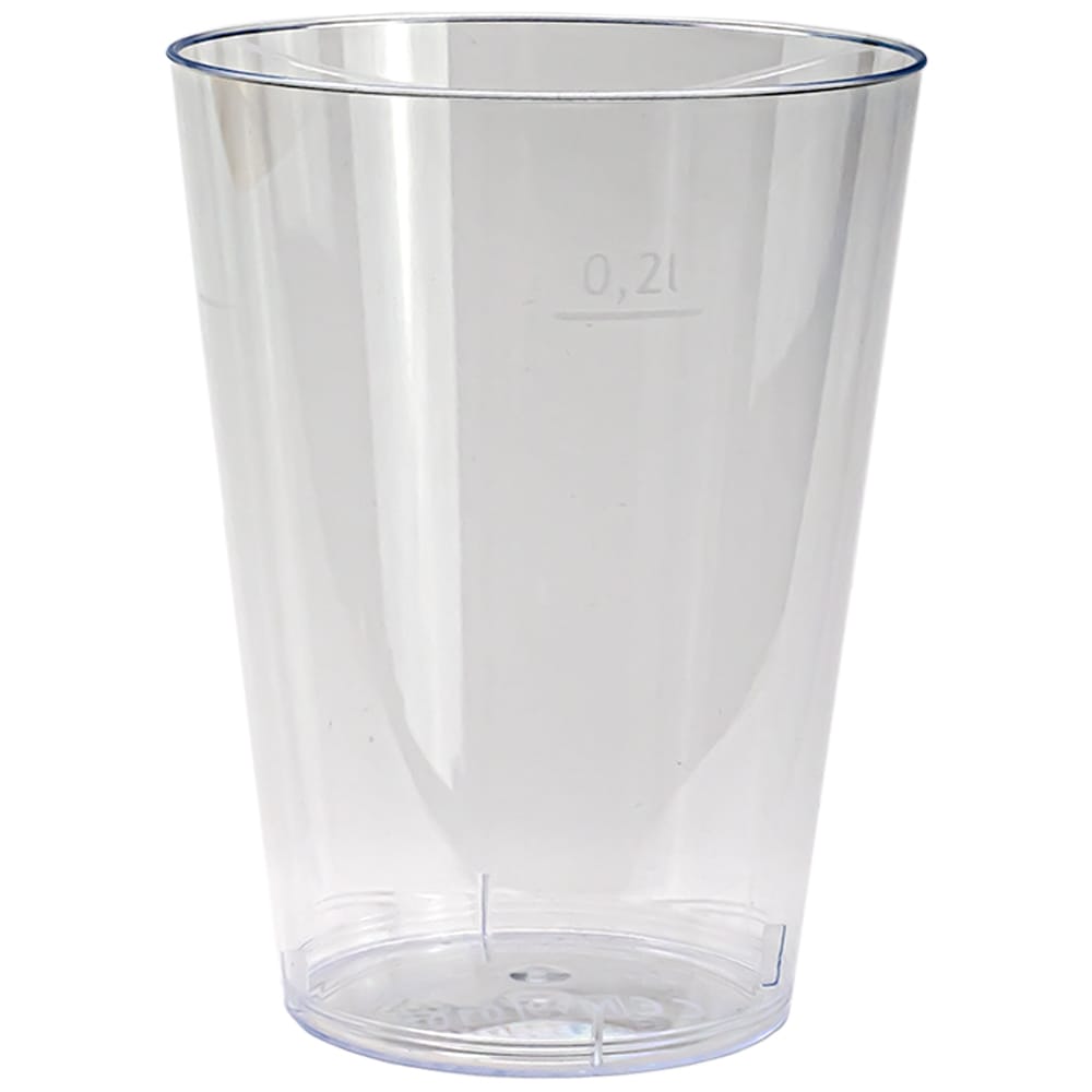 Die 2dl Trinkbecher sind genau geeicht, sodass Sie stets die richtige Menge an Getränken ausschenken können. Zudem überzeugen sie mit ihrer glasklaren Optik, die den Inhalt des Bechers bestens zur Geltung bringt. Ihre Gäste werden begeistert sein!