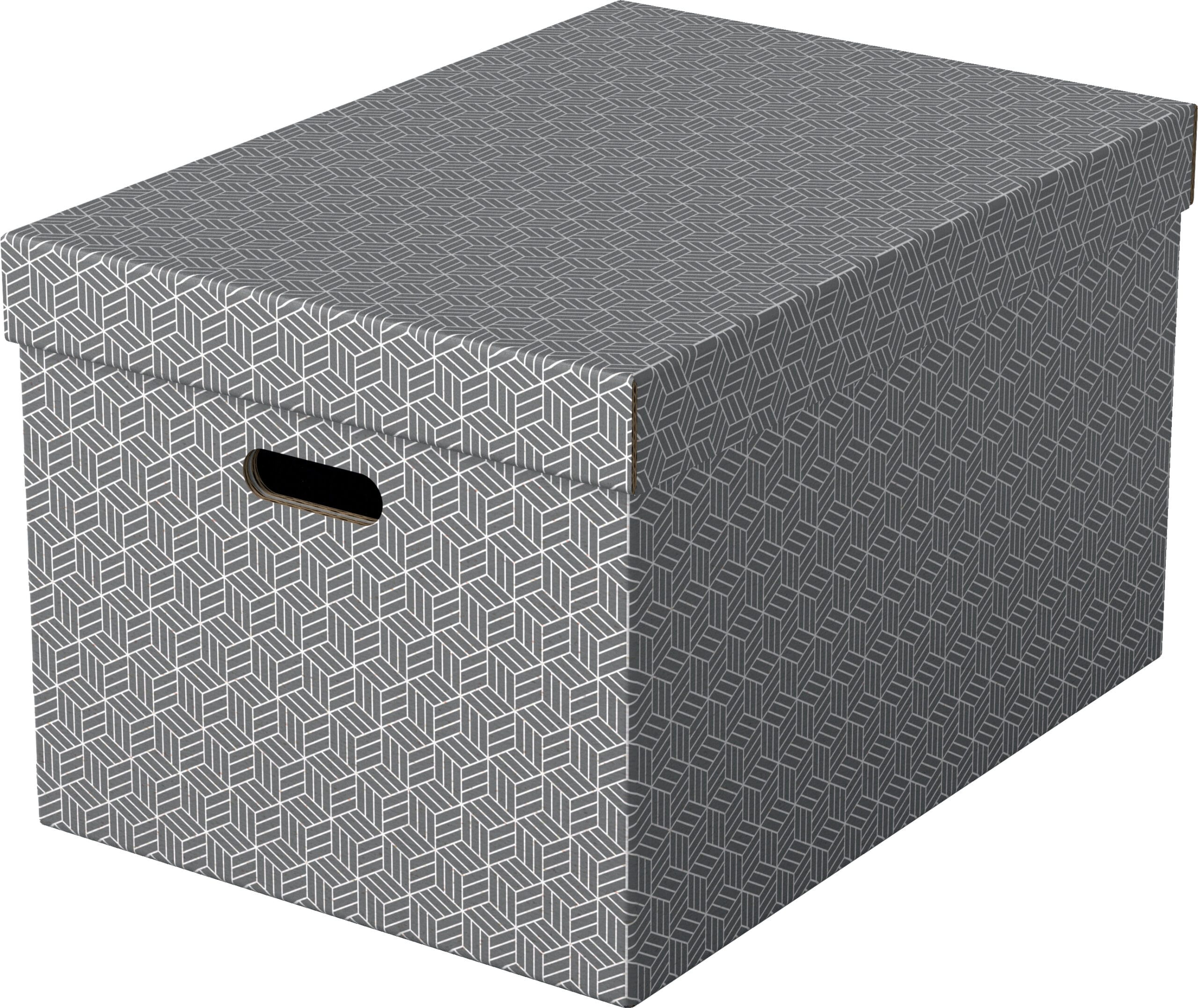 Die HOME Aufbewahrungsboxen bestehen zu 100 % aus recycelter und recycelbarer FSC®-zertifizierter Wellpappe. Die abwischbare Oberfläche ist nicht nur praktisch, sondern auch mit einem stilvollen geometrischen Muster versehen. Zudem wird das Set in einer plastikfreien Verpackung geliefert.
