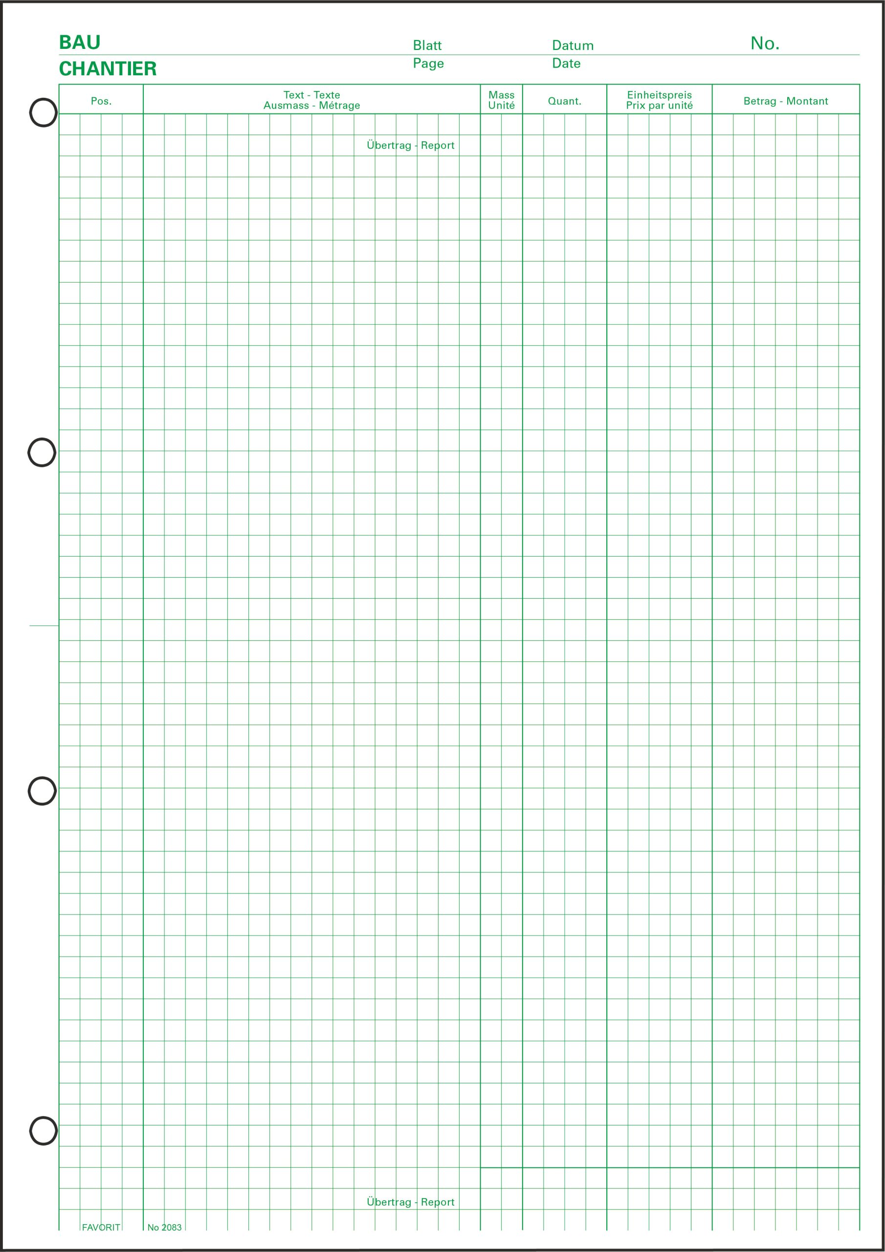 - Präzise Notizen: Die klare Struktur der Blätter ermöglicht eine einfache und übersichtliche Dokumentation von Massen und Informationen.