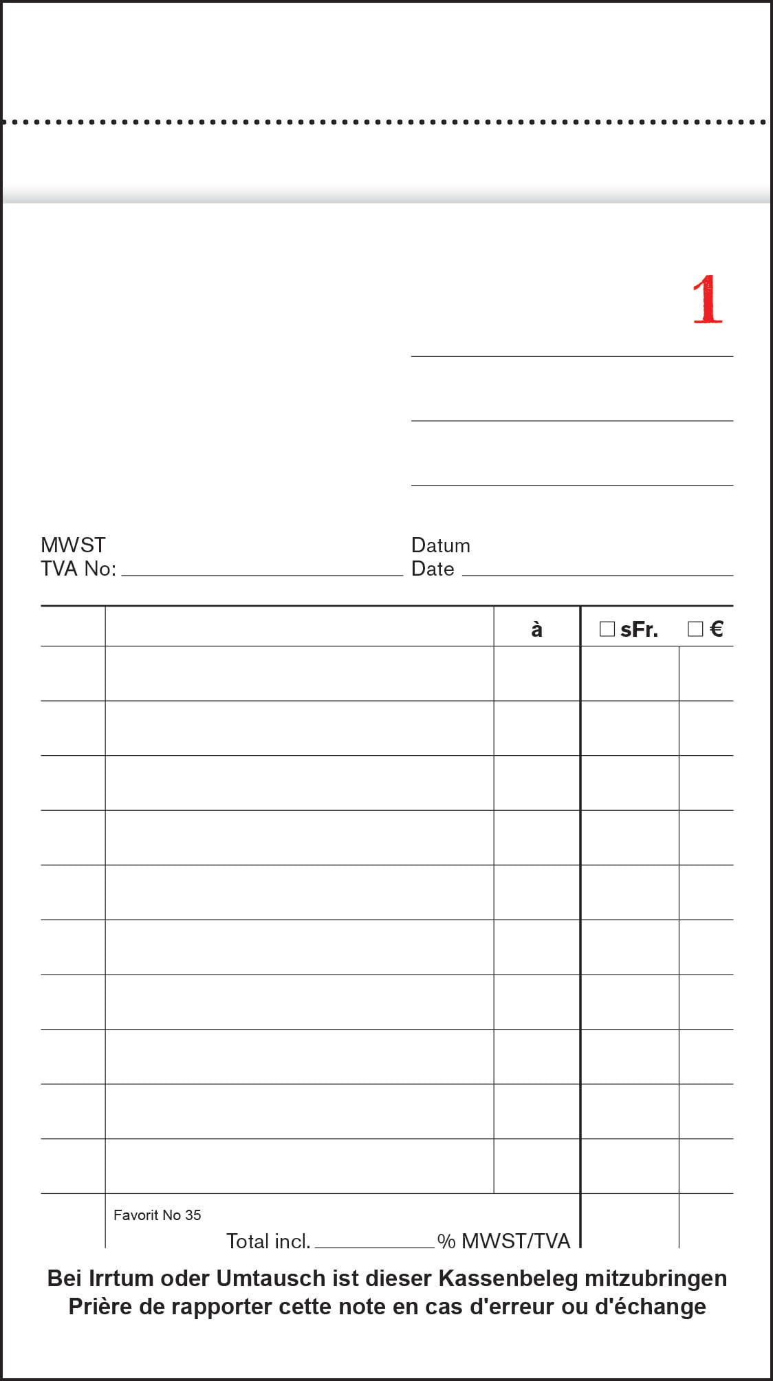 Praktischer Kassablock von FAVORIT