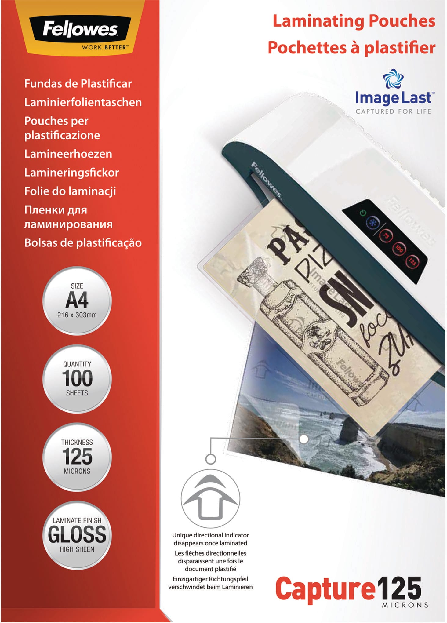 Mit den IMAGELAST Laminierfolien von FELLOWES erhalten Sie einen hochwertigen Schutz für Ihre Dokumente. Die Folienstärke von 125 Mikron sorgt für eine zuverlässige Haltbarkeit und eignet sich perfekt für Zertifikate, Lehrmittel, Aushänge und Dokumente, die häufig verwendet werden.