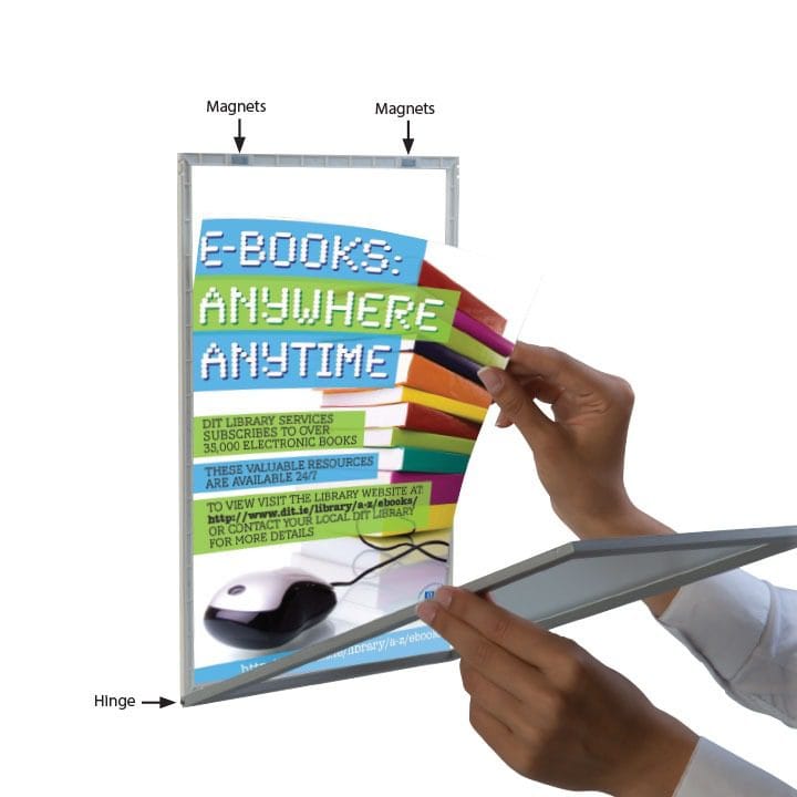 Der Window Sign überzeugt nicht nur durch seine Robustheit und sein ansprechendes Design, sondern auch durch seine einfache Handhabung. Der Posterwechsel gestaltet sich dank des durchdachten Systems besonders schnell und unkompliziert, sodass Sie Ihre Werbebotschaften im Handumdrehen aktualisieren können.
