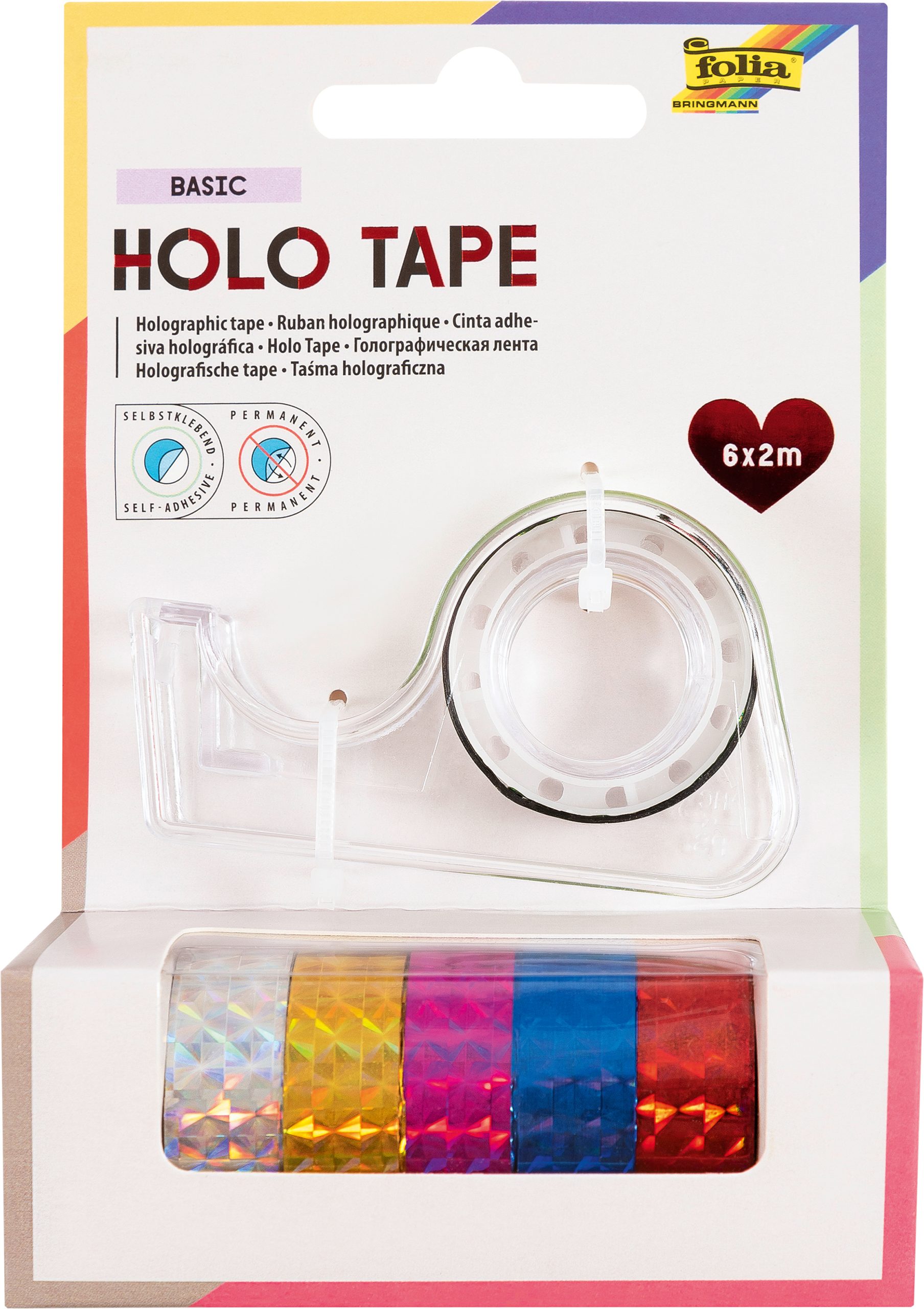 Das FOLIA Holo Tape 12mmx2m in der Basic-Variante bietet 6 Stück vielseitiges Deko-Band mit holografischem Effekt für kreative Bastelprojekte. Ideal für Geschenke und Scrapbooking!
