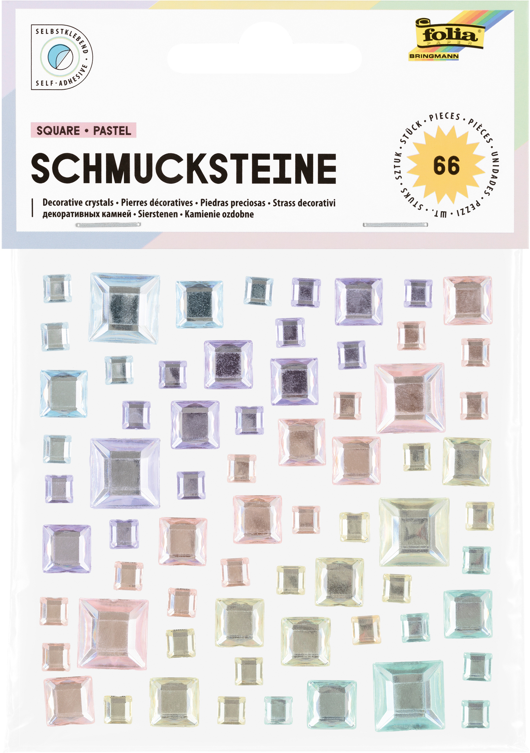FOLIA Schmucksteine 12315 Square Pastel 67 Stück