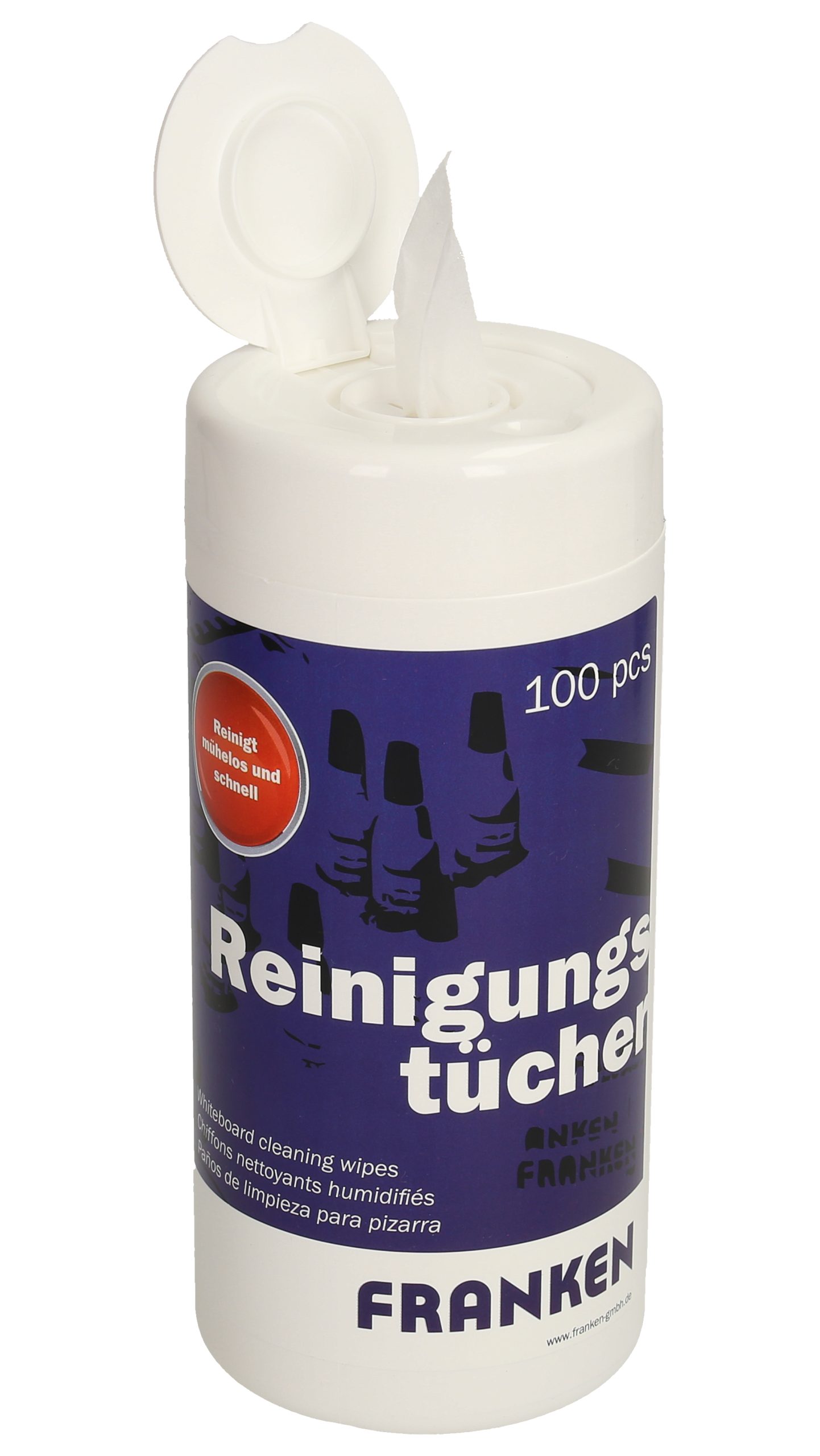 Die universellen FRANKEN Reinigungstücher sind für die Verwendung auf allen gängigen Whiteboards geeignet. Ob in der Schule, im Büro oder bei Präsentationen – die Tücher sind vielseitig einsetzbar und überzeugen durch ihre einfache Handhabung. Sie können sowohl zur täglichen Pflege als auch zur intensiven Reinigung nach einer längeren Nutzung eingesetzt werden. Dank der handlichen Verpackung sind die Tücher überall leicht mitzuführen und jederzeit einsatzbereit.