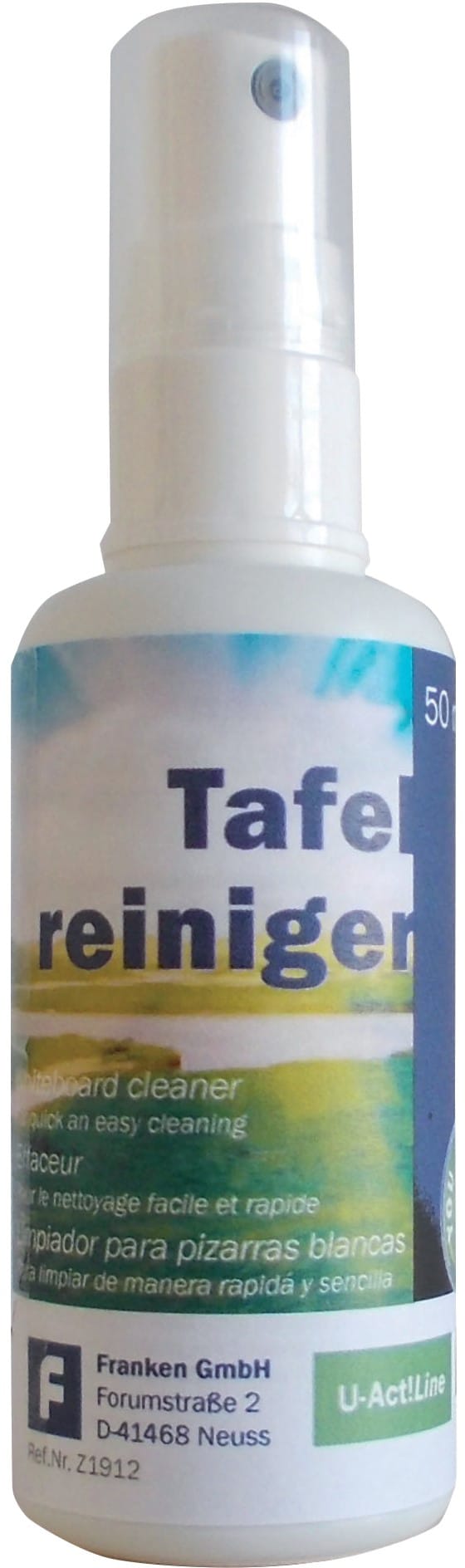 Mit dem U-ACHT!LINE Tafelreiniger erhalten Sie ein Qualitätsprodukt, das speziell für die Reinigung von Schreib- und Magnettafeln entwickelt wurde. Entfernen Sie mühelos Schmutz und Flecken und sorgen Sie für eine klare und saubere Oberfläche, auf der Ihre Notizen und Nachrichten optimal zur Geltung kommen. Gönnen Sie sich und Ihrer Tafel die Pflege, die sie verdient – mit dem U-ACHT!LINE Tafelreiniger.