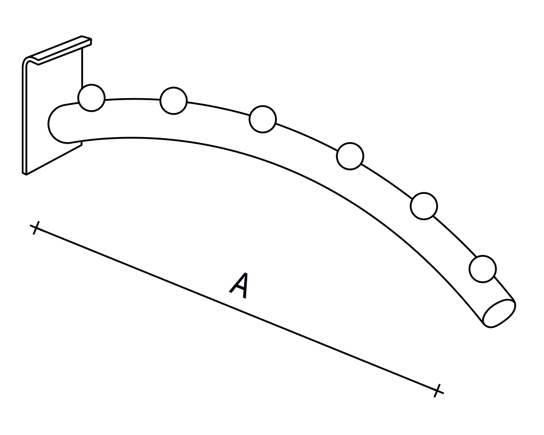 Mit einer Länge von 26 cm (A) bietet dieser gebogene Arm ausreichend Platz, um insgesamt 6 Kugeln oder andere Dekorationen anzubringen. Egal ob im Wohnzimmer, Schlafzimmer oder Flur – dieser Arm eignet sich ideal, um deine Lieblingsstücke stilvoll zu präsentieren und sie in Szene zu setzen. Durch die geschwungene Form entsteht zudem eine interessante Dynamik, die Blicke auf sich zieht.