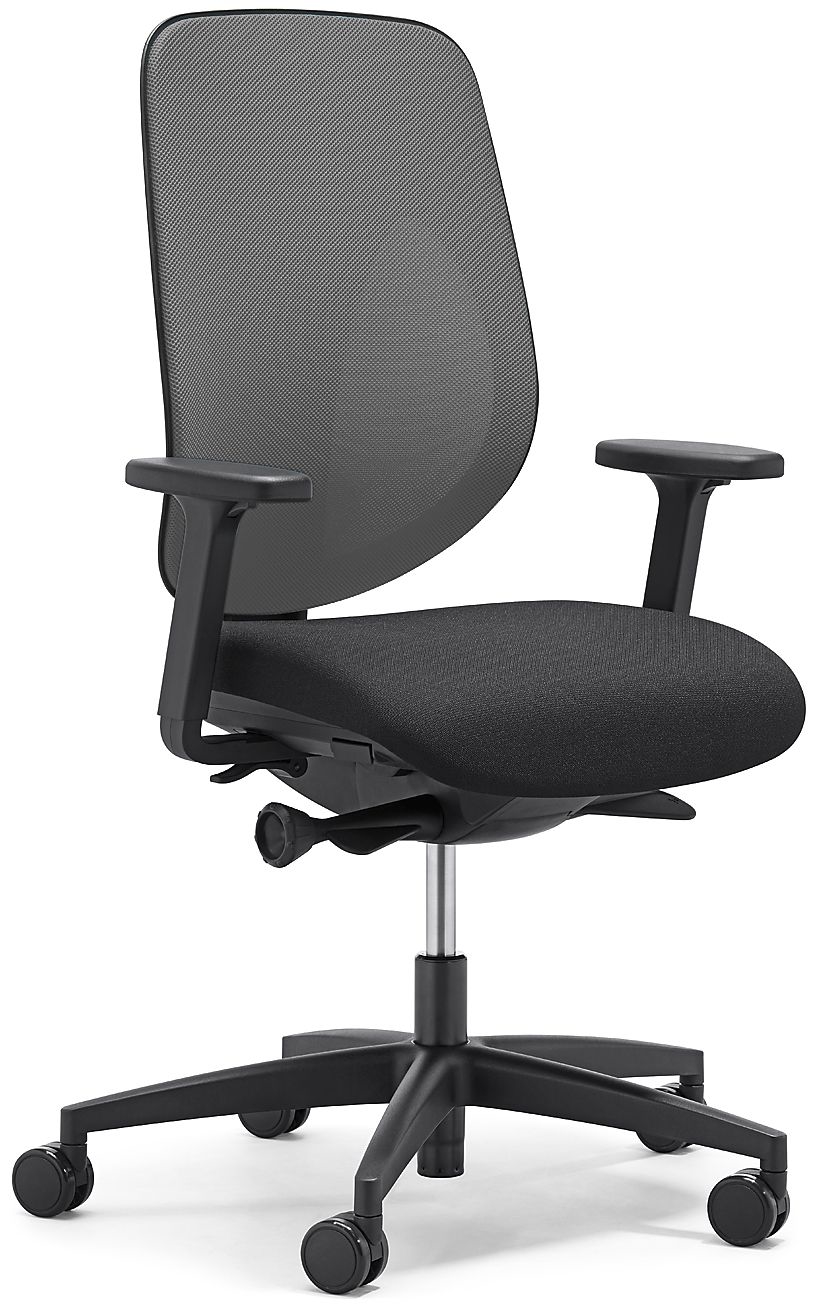 Der Stuhl besteht aus hochwertigen Materialien, die sowohl langlebig als auch pflegeleicht sind. Der Bezug ist aus robustem Stoff gefertigt, der nicht nur angenehm zu sitzen ist, sondern auch eine ansprechende Optik bietet. Die Armlehnen sind weich gepolstert und bieten zusätzlichen Komfort während der Arbeit. Die solide Konstruktion gewährleistet eine lange Lebensdauer und Stabilität, selbst bei intensiver Nutzung.