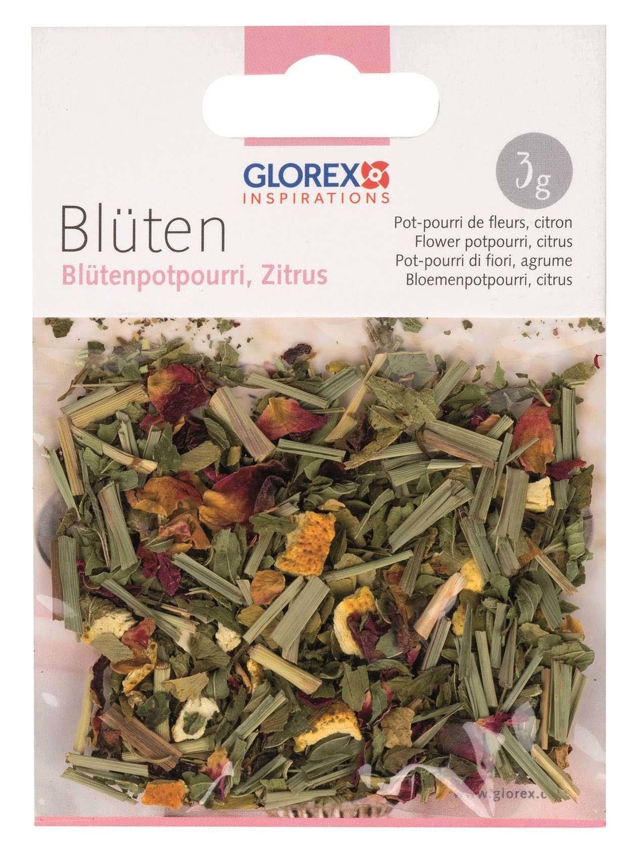 Das GLOREX Blütenpotpourri besteht aus sorgfältig ausgewählten, getrockneten Blüten und Zitrusfrüchten, die nicht nur optisch ansprechend sind, sondern auch einen angenehmen, erfrischenden Duft verbreiten. Die Verwendung von natürlichen Materialien garantiert, dass das Potpourri umweltfreundlich ist und keine schädlichen Chemikalien enthält. Die Kombination aus verschiedenen Blüten und Zitrusnoten sorgt für ein harmonisches Dufterlebnis, das sowohl beruhigend als auch erfrischend wirkt.