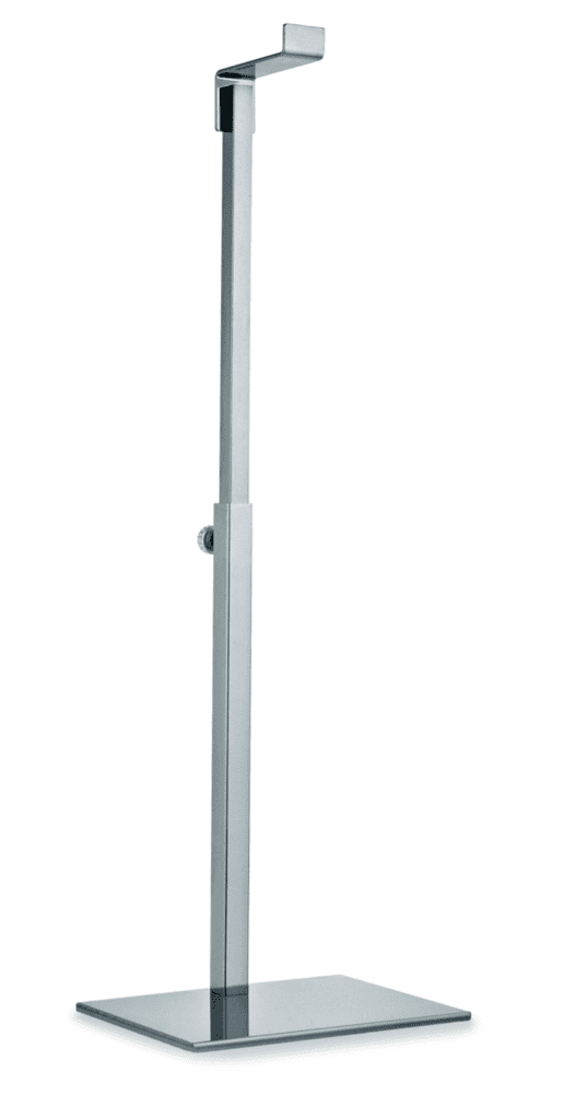Der verchromte Taschenständer mit schwarzem Metallboden ist die ideale Lösung, um Ihre Handtaschen, Rucksäcke und andere Accessoires ordentlich und griffbereit aufzubewahren. Mit Maßen von 20x15x38-63 cm passt er problemlos in jede Ecke Ihres Schranks, Ihrer Garderobe oder Ihres Ladens.