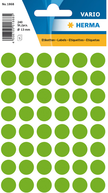 Die HERMA Etiketten rund in leuchtgrün mit einem Durchmesser von 13 mm sind die ideale Lösung für alle, die ihre Organisation und Kreativität auf ein neues Niveau heben möchten. Mit 240 Etiketten pro Packung bieten sie vielfältige Einsatzmöglichkeiten im Büro, zu Hause oder bei Veranstaltungen.